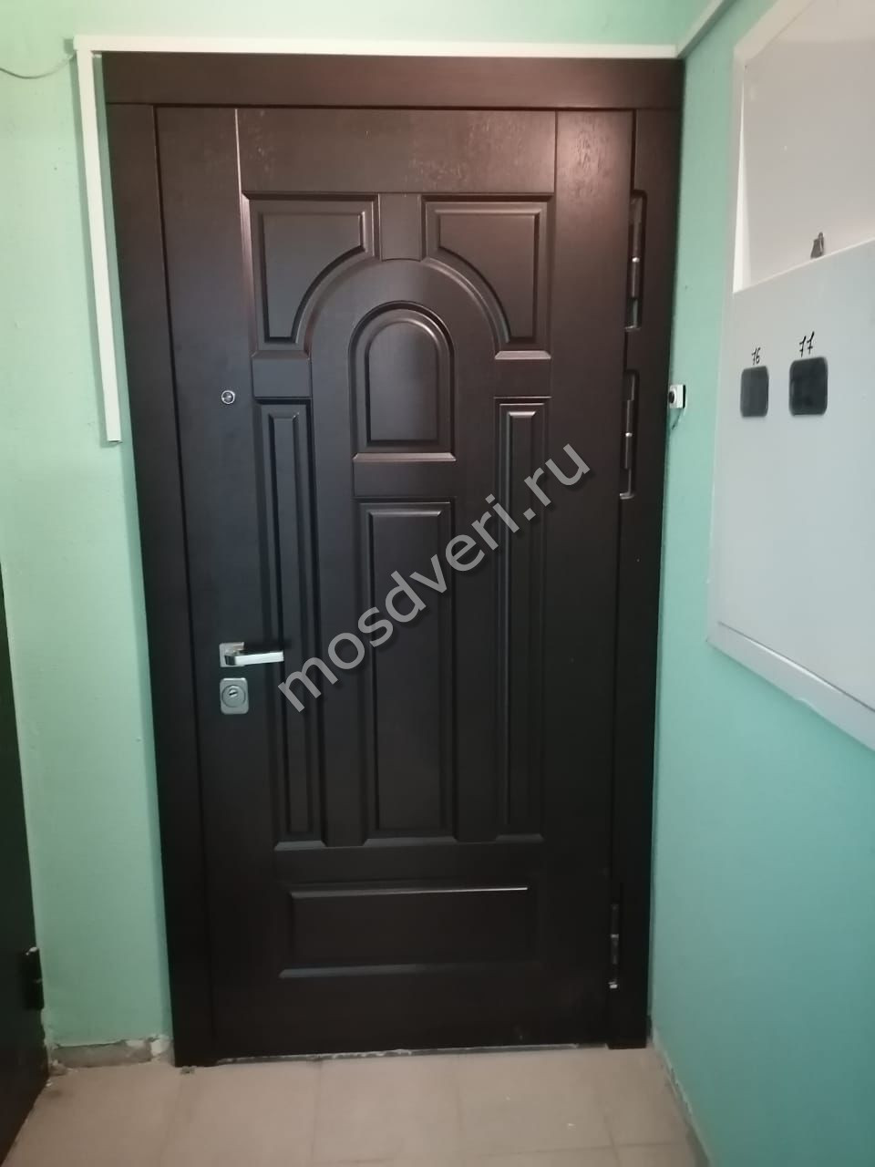 Входная металлическая дверь в квартиру из темного МДФ — объединяет эстетичность и высокую надёжность.